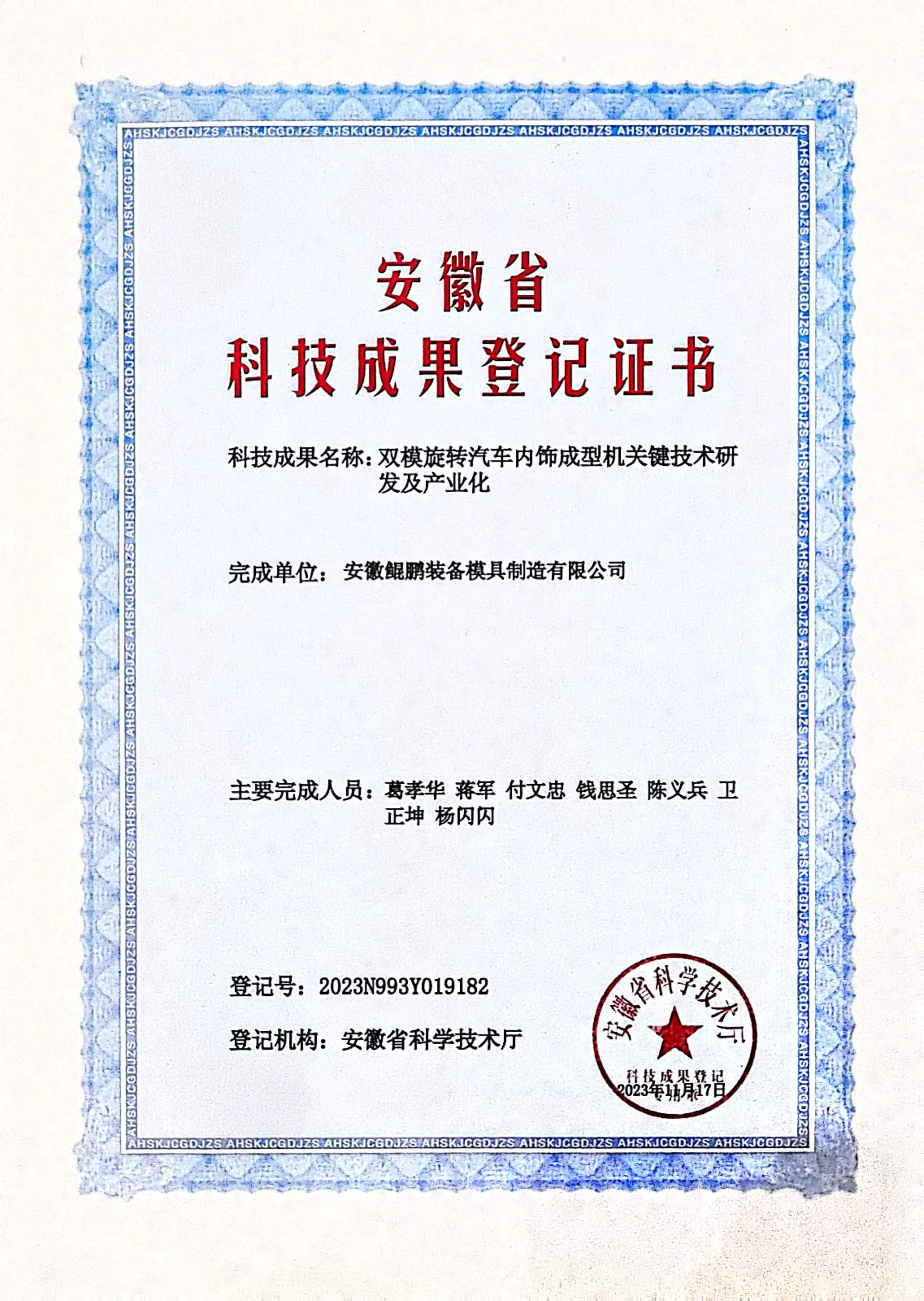 春節開工第一周,繼安徽省專利百強,省級新產品認定雙報喜訊后,公司“多層塔式冰箱發泡設備關鍵技術研發及產業化”、“雙模旋轉汽車內飾成型機關鍵技術研發及產業化”兩項科技成果通過安徽省科技成果認定。堅持以技術創新填補產業鏈空白,堅持在“工業母機”的裝備領域深耕細作,在推動產業現代化“智轉數改”的道路上,鯤鵬將勇往直前,扶搖直上。