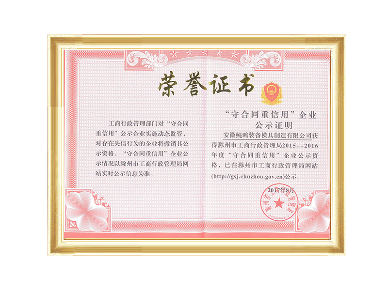 滁州市201502016守合同重信用企業(yè)