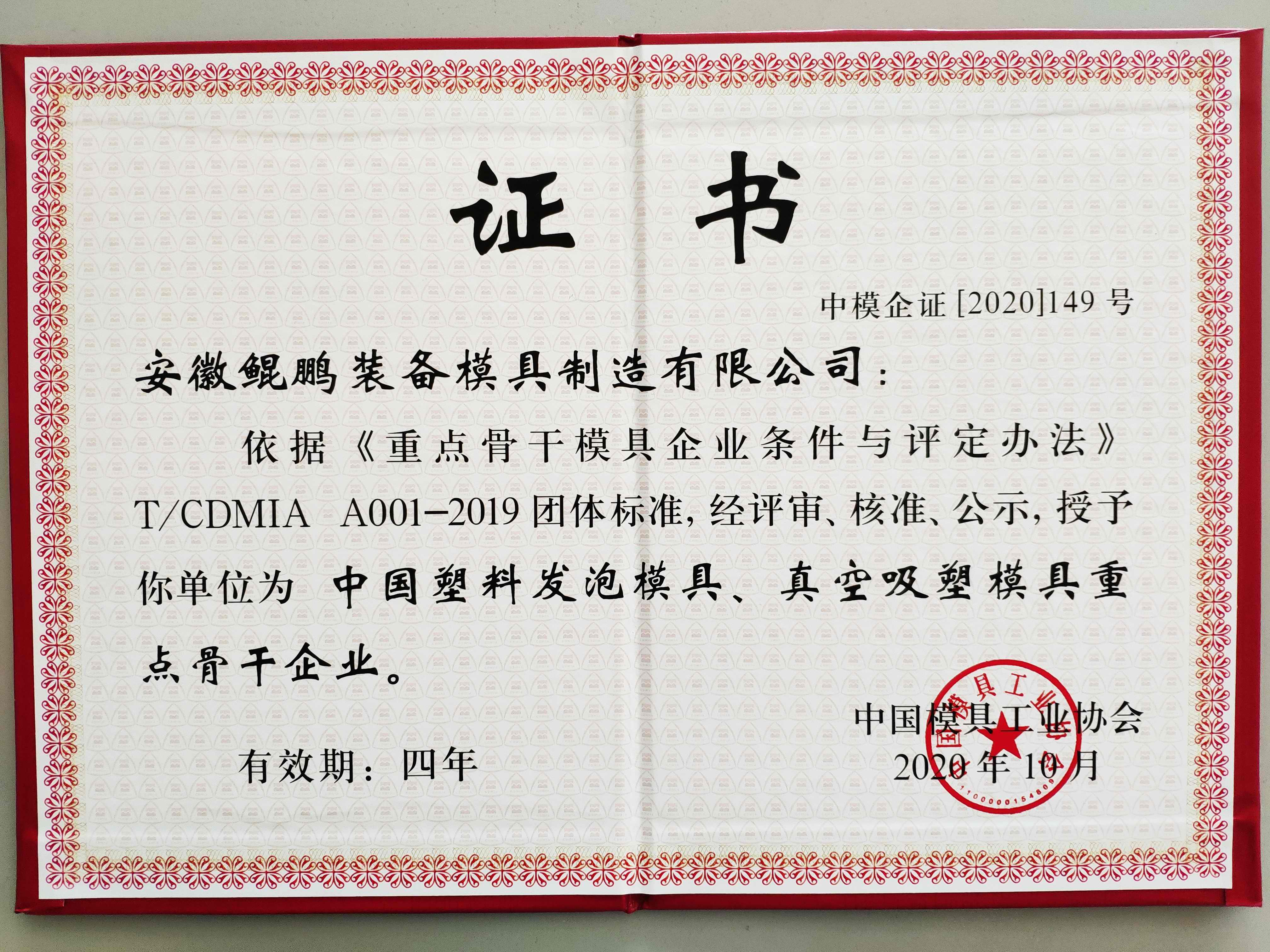 在10月9日于上海召開的中國模具工業協會第九屆會員代表大會暨2020模具高質量發展行業大會上,我公司再次獲得中國重點骨干模具企業(塑料發泡模具、真空吸塑模具)稱號,這也是我公司自2006年以來,連續在塑料發泡模具、真空吸塑模具領域獲得中國重點骨干模具企業稱號。
