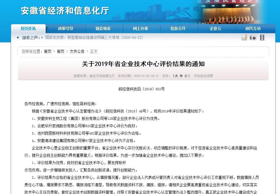 由省經濟和信息化廳組織的全省省級企業技術中心2019年度評價中,我公司省企業技術中心獲得優秀。企業技術中心是企業自主創新的重要平臺,省企業技術中心實行優勝劣汰、動態調整的評價制度。在參加這次評價考核的1310家省企業技術中心中,包括我公司在內的126家省級企業技術中心獲得優秀,有67家企業技術中心評為不合格,做摘牌處理。